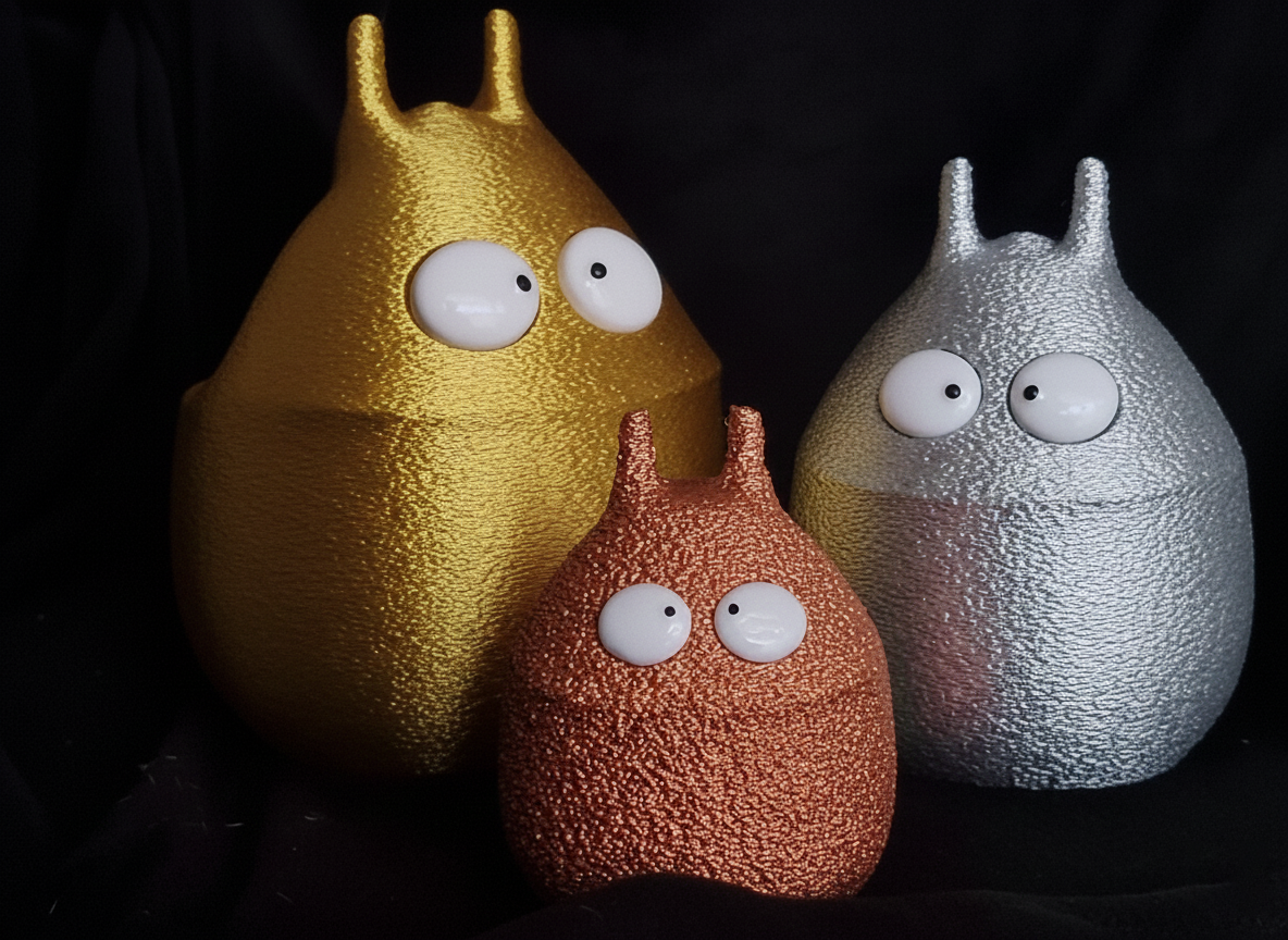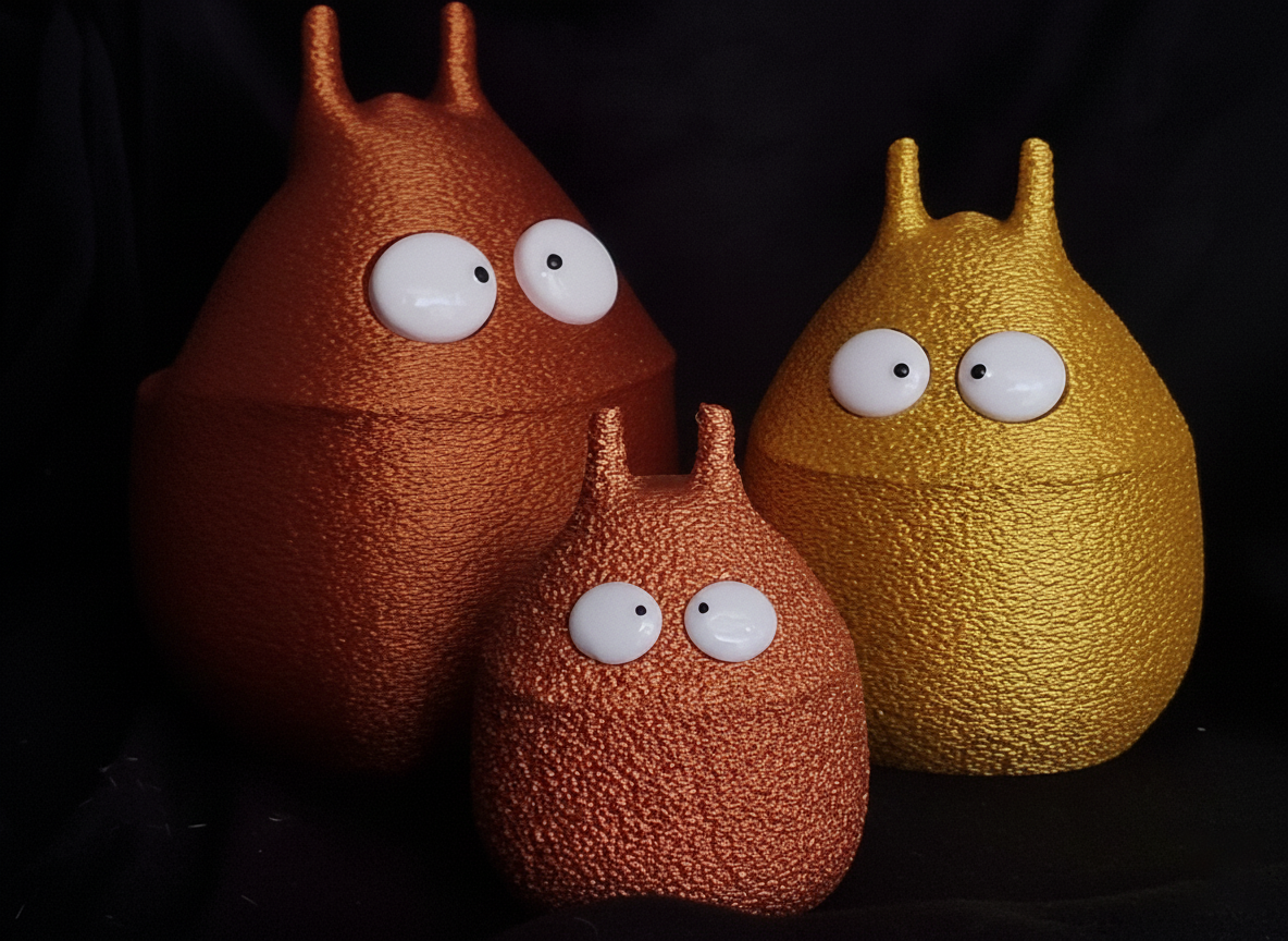 Hol dir die Blaboo Family auf deinen Schreibtisch! Dieses Set ist weit mehr als nur gewöhnliche 3D-Drucke. Mit ihrem speziellen „Fuzzy Skin“-Effekt und dem edlen Matte-Finish haben diese kleinen Kerle eine einzigartige, samtige Haptik, die man einfach anfassen muss. Keine glänzenden Plastikoberflächen, sondern purer, moderner Style.