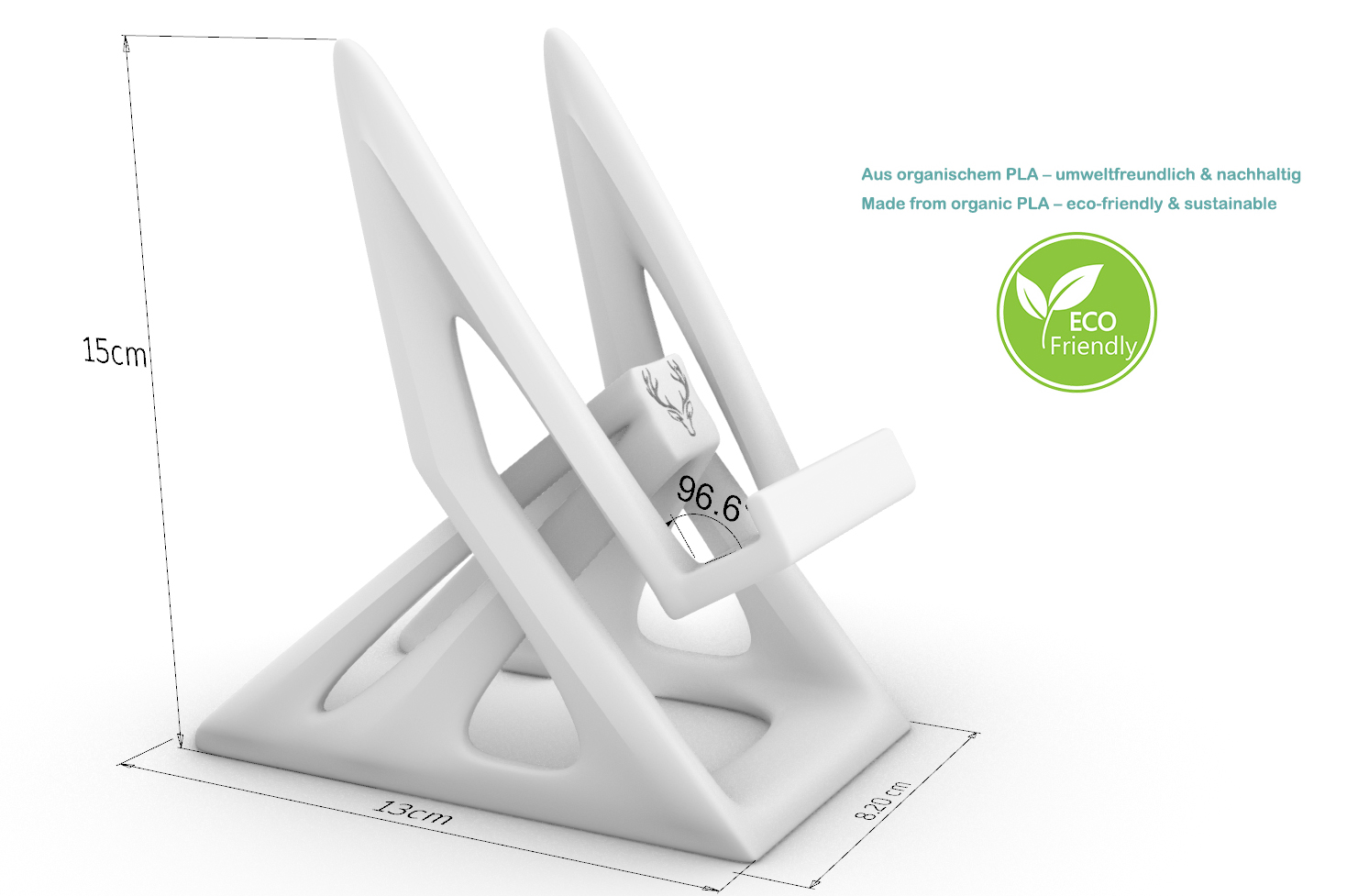 Der GeoStand ist die perfekte Fusion aus nachhaltiger Technologie und markantem Design. Dieser skulpturale Telefonhalter wird sorgfältig aus umweltfreundlichem PLA 3D-gedruckt und ist damit mehr als nur ein Accessoire – er ist ein optisch beeindruckendes Stück funktionaler Kunst.